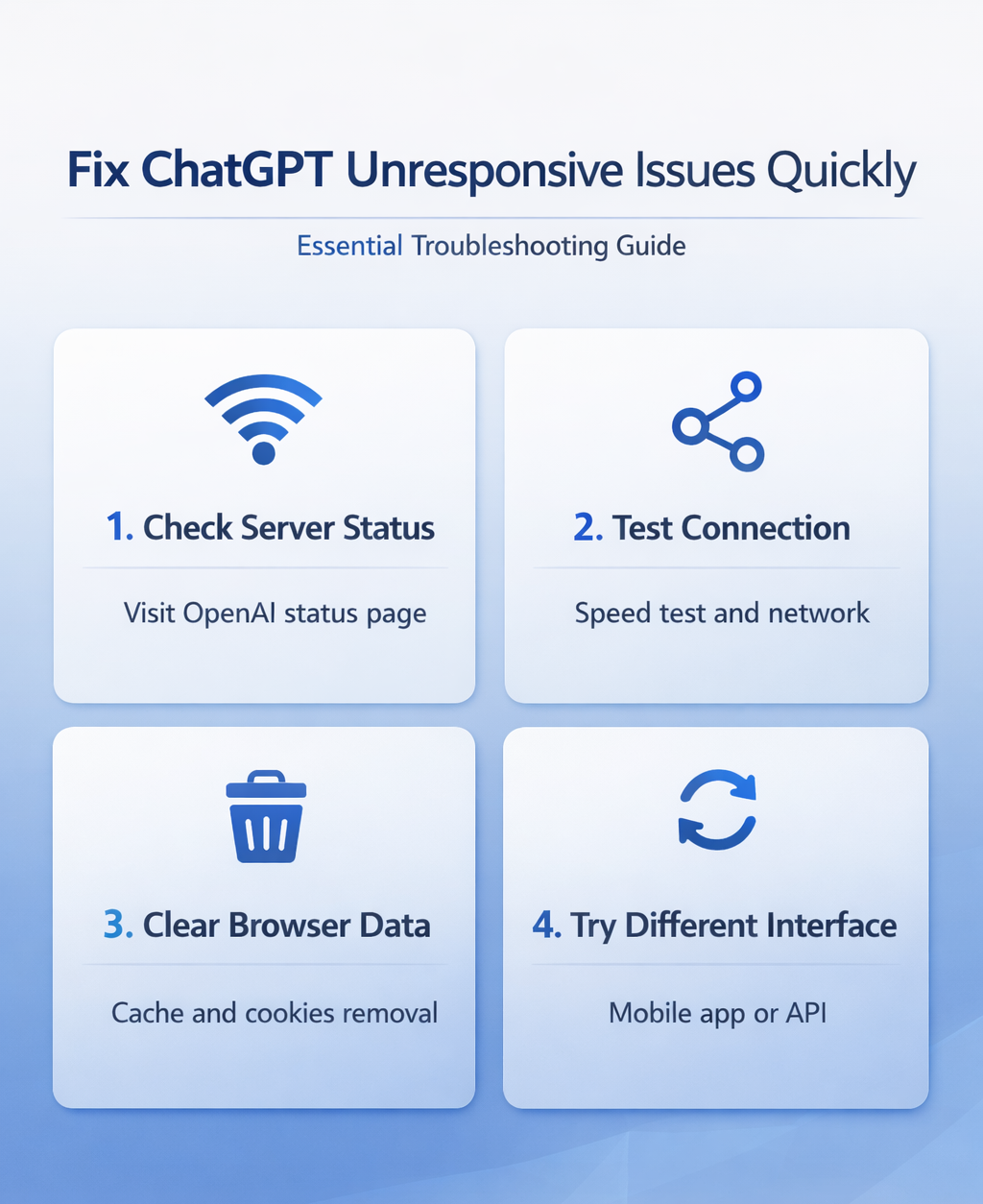 The good news is that most ChatGPT unresponsive situations can be resolved within minutes using systematic troubleshooting approaches.