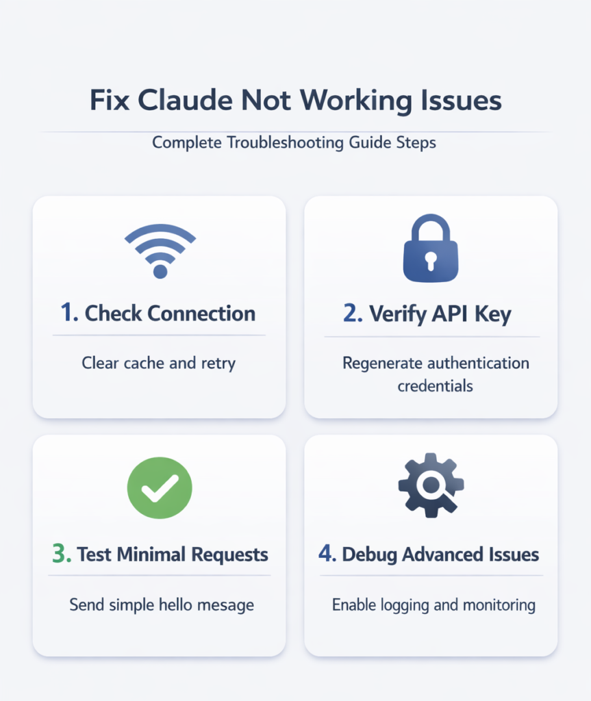Claude troubleshooting becomes straightforward when you follow systematic diagnostic steps. Start with authentication and connection basics, then move to advanced solutions for persistent problems.