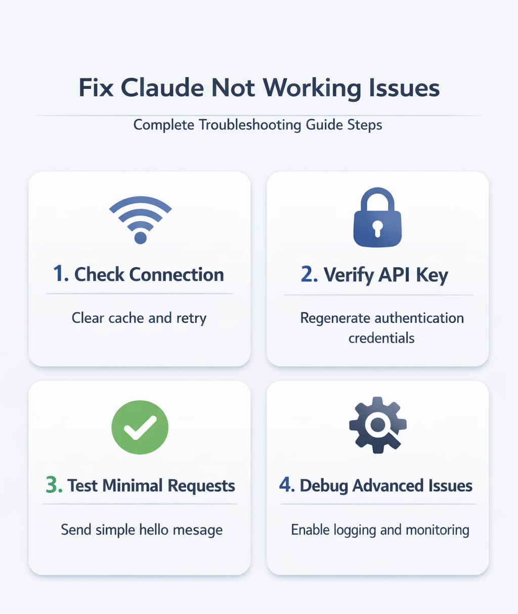 Claude troubleshooting becomes straightforward when you follow systematic diagnostic steps. Start with authentication and connection basics, then move to advanced solutions for persistent problems.