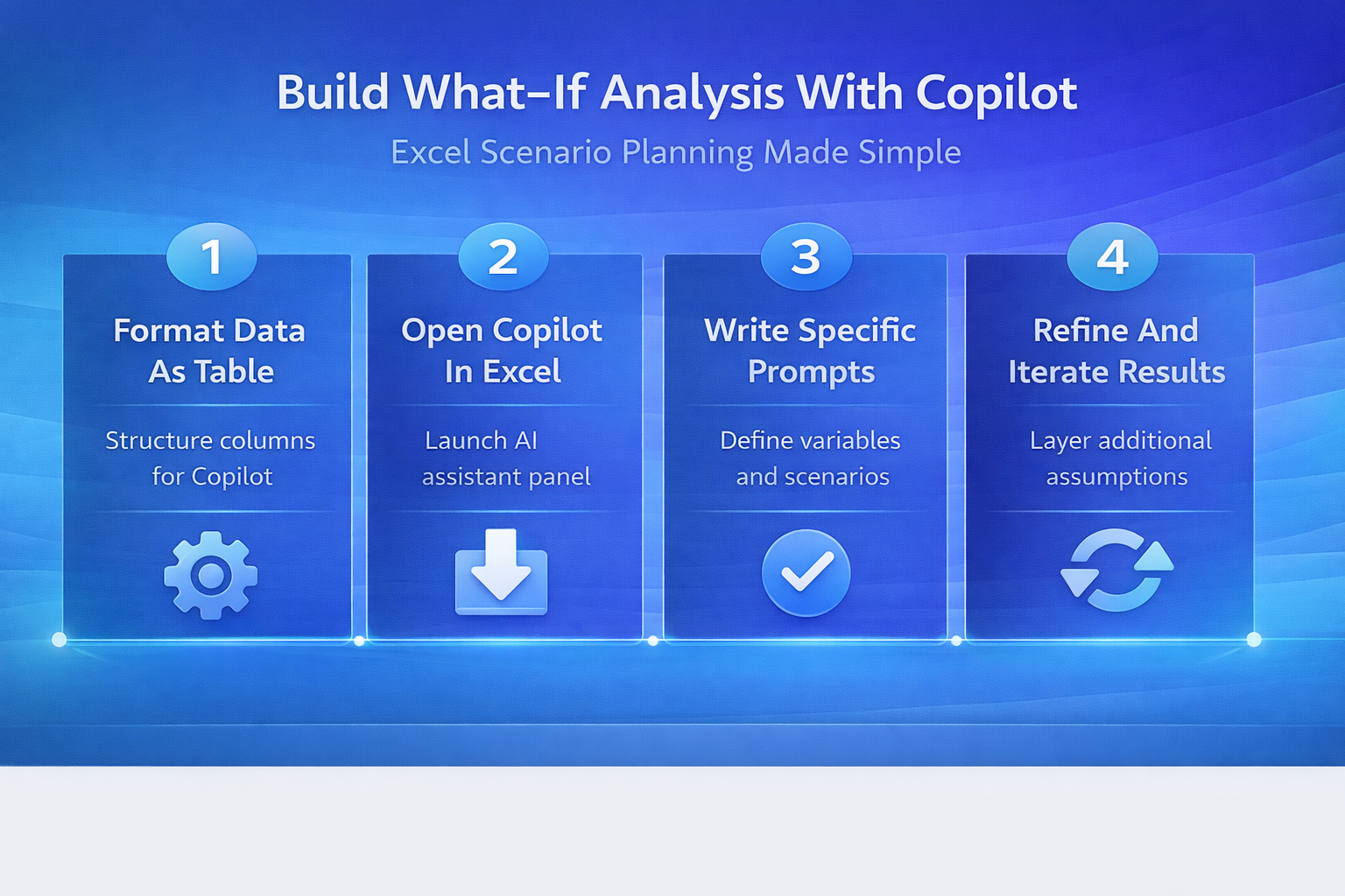 Before you ask Copilot to build any scenario model, you need a structured dataset formatted as an Excel table with clearly labeled column headers and consistent data types. Copilot reads your table structure to understand variable relationships, so ensuring clean data with no merged cells or blank rows helps the AI generate accurate and relevant what-if analysis results every time.