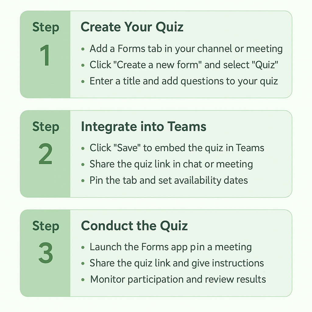 Some of the steps below will require administrative access to Microsoft Teams, Forms integration permissions, and basic familiarity with Teams meeting controls. The solution works across desktop, mobile, and web versions of Teams.