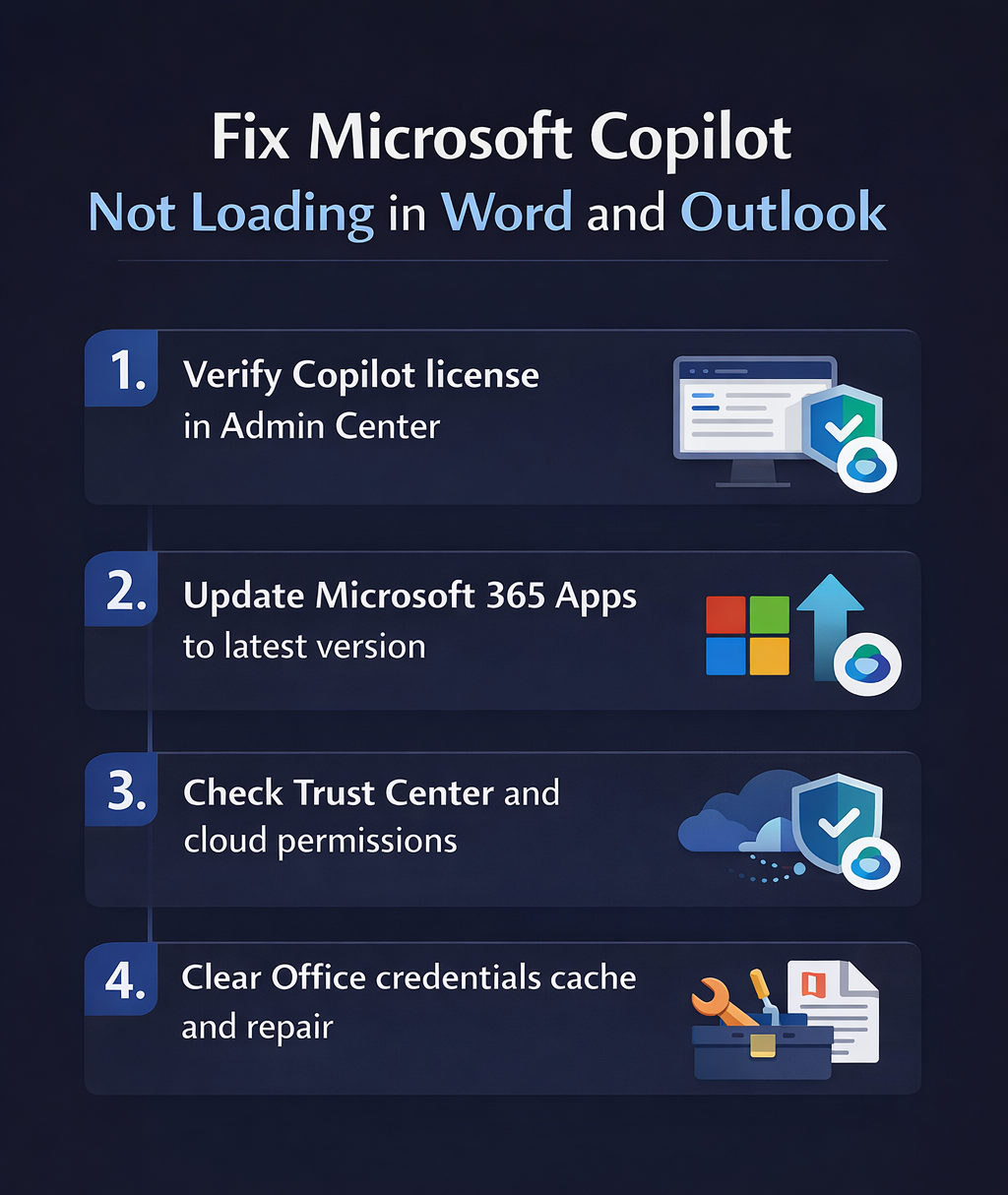 Before Copilot can load in Word or Outlook, your organization must have active Copilot licenses assigned to your account, and your Microsoft 365 Apps must be updated to a compatible version that supports the feature. Additionally, your IT administrator needs to have Copilot enabled at the tenant level through the Microsoft 365 admin center, and your network must allow connections to the necessary Microsoft cloud services. This tutorial walks you through verifying each of these prerequisites and provides actionable solutions when Copilot fails to appear or load in your desktop applications.