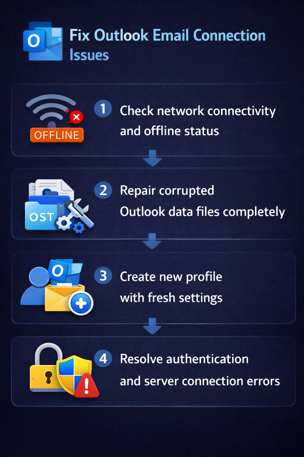 Corrupted Outlook data files (PST or OST files) frequently cause connection problems that prevent Outlook from opening your mailbox or synchronizing with the server properly. Microsoft provides the Inbox Repair Tool (ScanPST.exe) specifically designed to detect and fix corruption within these data files that store your emails, calendar items, and other mailbox content locally.