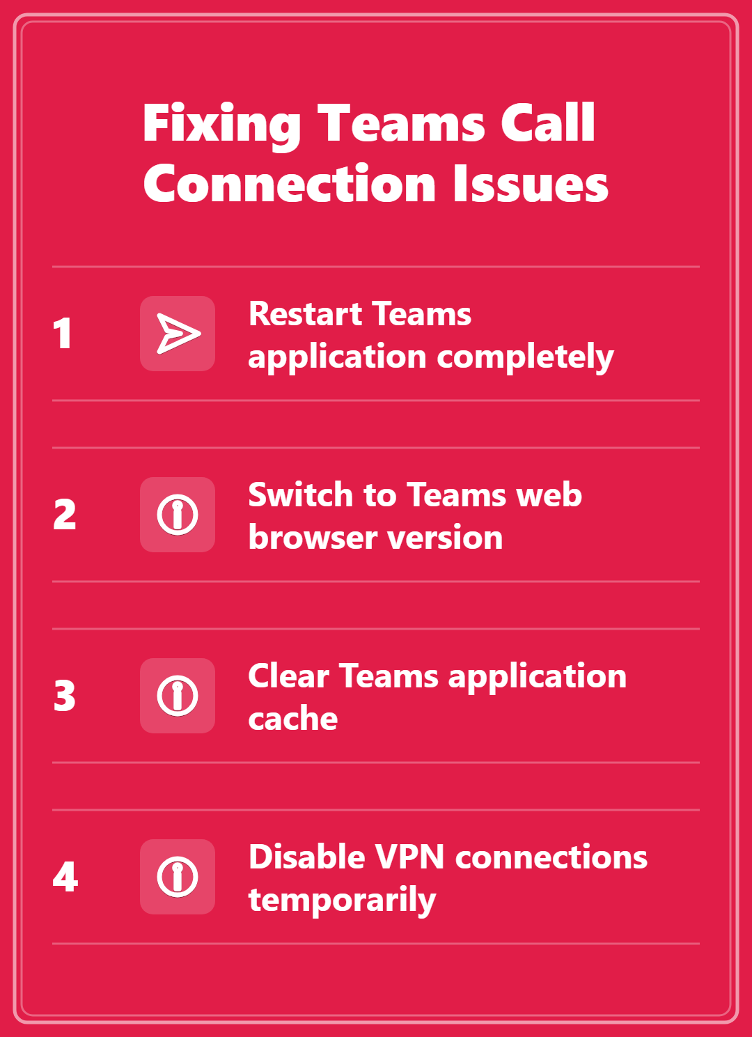 • Close the Teams application completely using Task Manager or Activity Monitor, then restart the application to clear any temporary connection conflicts that might prevent call establishment.