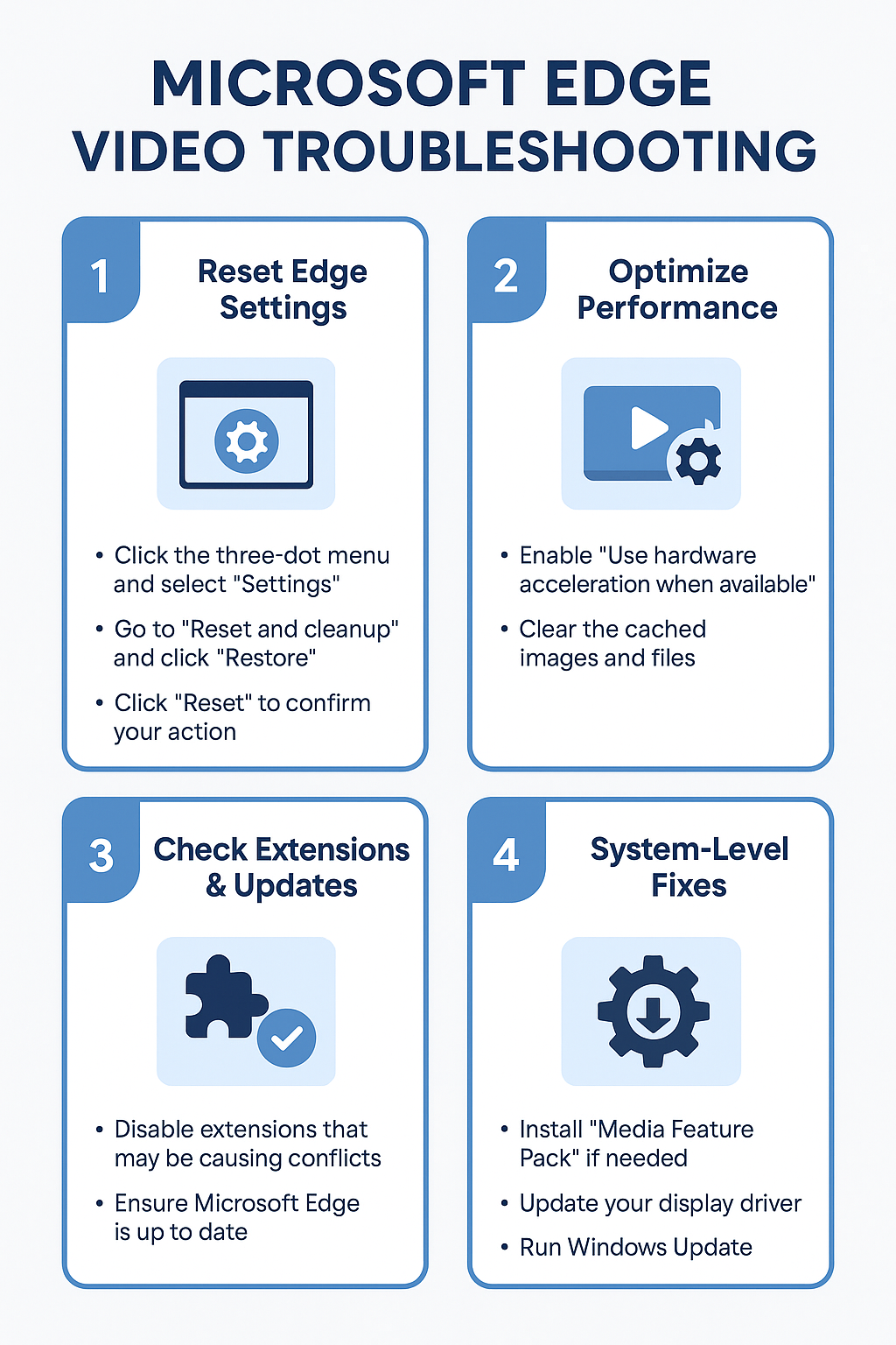 Step-by-step Microsoft Edge video troubleshooting implementation