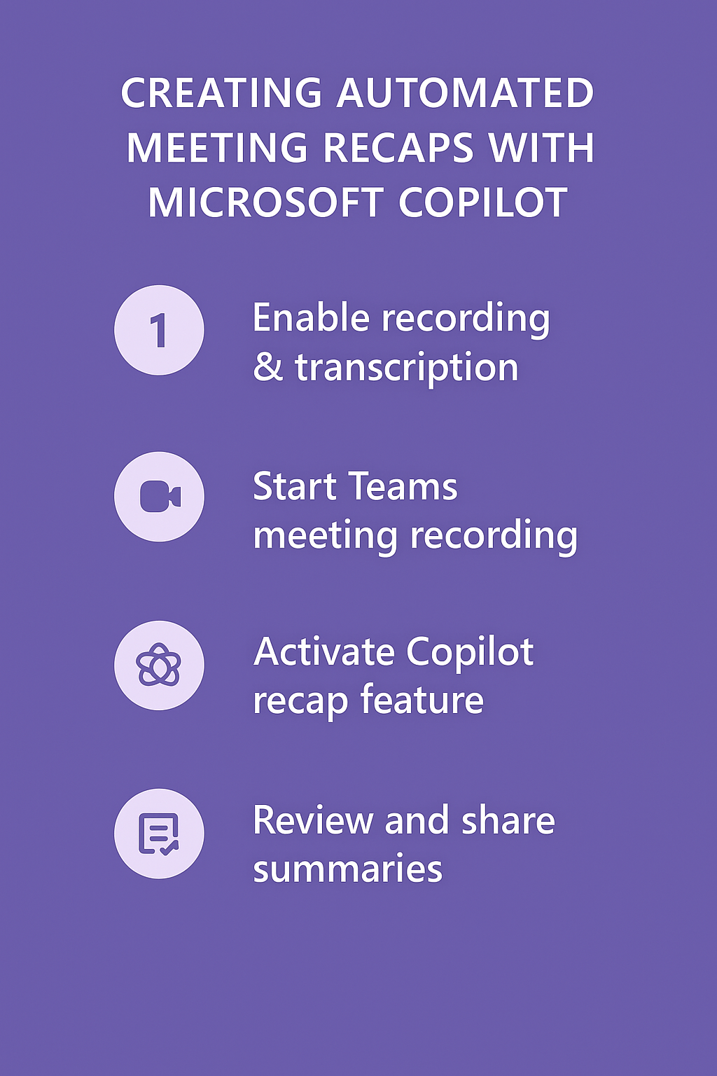 We will show how to configure and utilize Copilot’s intelligent recap capabilities within Microsoft Teams to automatically generate comprehensive meeting summaries. You will learn to enable recording features, access AI-generated summaries, customize recap formats, and distribute meeting insights to participants and stakeholders efficiently.