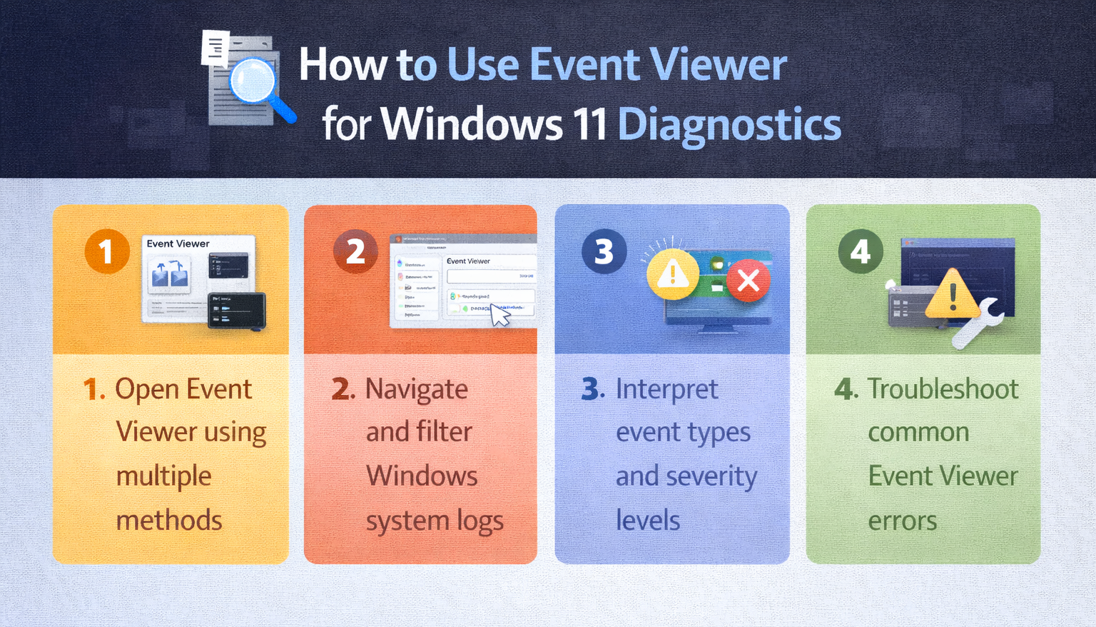 Windows 11 includes Event Viewer, a powerful built-in tool that records detailed information about system operations, application behavior, and security events. Understanding how to navigate and interpret these logs enables you to identify root causes of system issues, monitor security events, and maintain proactive system health management.