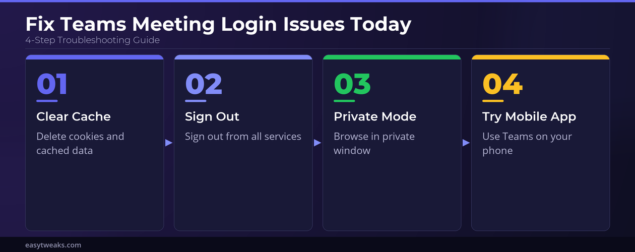 Teams meeting login problems block access when you need it most. Authentication errors typically stem from account type conflicts, browser issues, or credential synchronization problems. These specific troubleshooting steps resolve the most common access barriers.