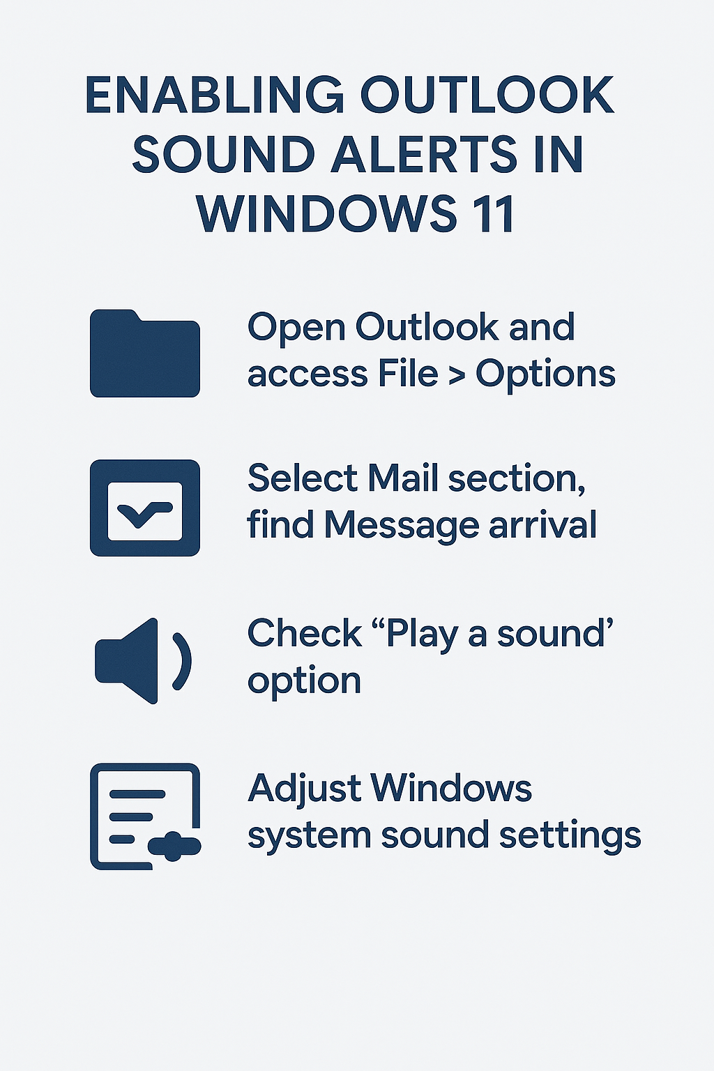 “I keep missing important emails because I don’t hear any notification sounds when new messages arrive in Outlook. How can I make sure I get audio alerts for incoming emails and reminders on my Windows 11 computer?” This common workplace challenge affects productivity when critical communications go unnoticed without proper sound notifications configured in Microsoft Outlook.