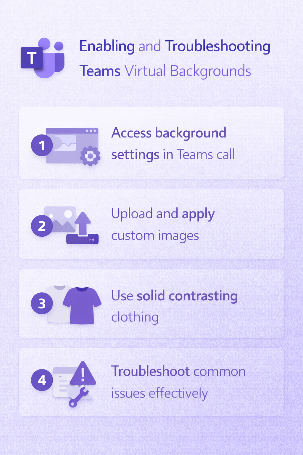 Expert Tip: Custom virtual backgrounds work best with solid colored clothing that contrasts with your chosen background image, helping Teams’ AI better distinguish between you and the background for cleaner edge detection.